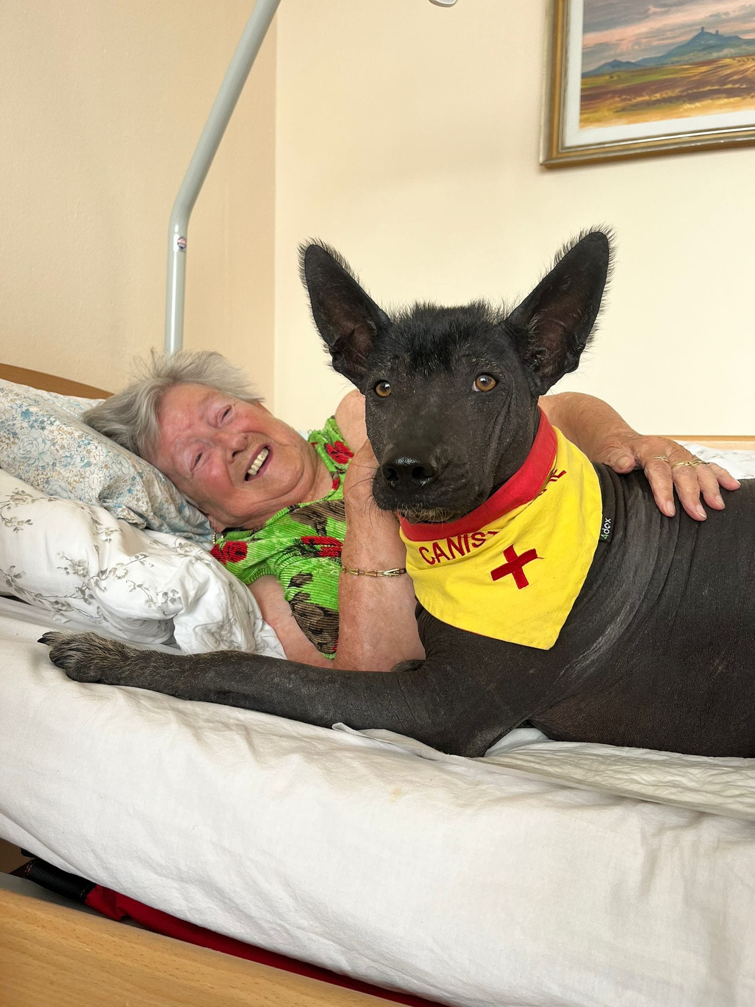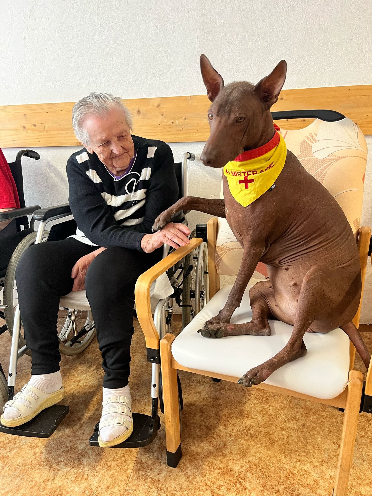 Paní Marcela Maroušková chodí do Harmonie pravidelně jedenkrát týdně se svými bezsrstými naháči - Malinou, Carinkou, Viky a Roxy. Nyní svoji smečku canisterapeutických pejsků rozšířila o štěňata v zácviku - temperamentní Amálku a Nelinku, která do zařízení vnáší novou a velmi pozitivní energii. Vždy se těšíme na další návštěvu, která je oblíbená nejen mezi uživateli, ale i zaměstnanci. Děkujeme za tu možnost rozdávat lidem radost touto formou. 🙏🙏🙏