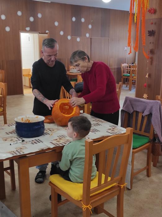 V pátek 24. 10. k nám děti zavítaly a společně jsme dlabali opravdové dýně i vyráběli papírové duchy. Zábava to byla veliká – pro malé i velké. 🎨✨