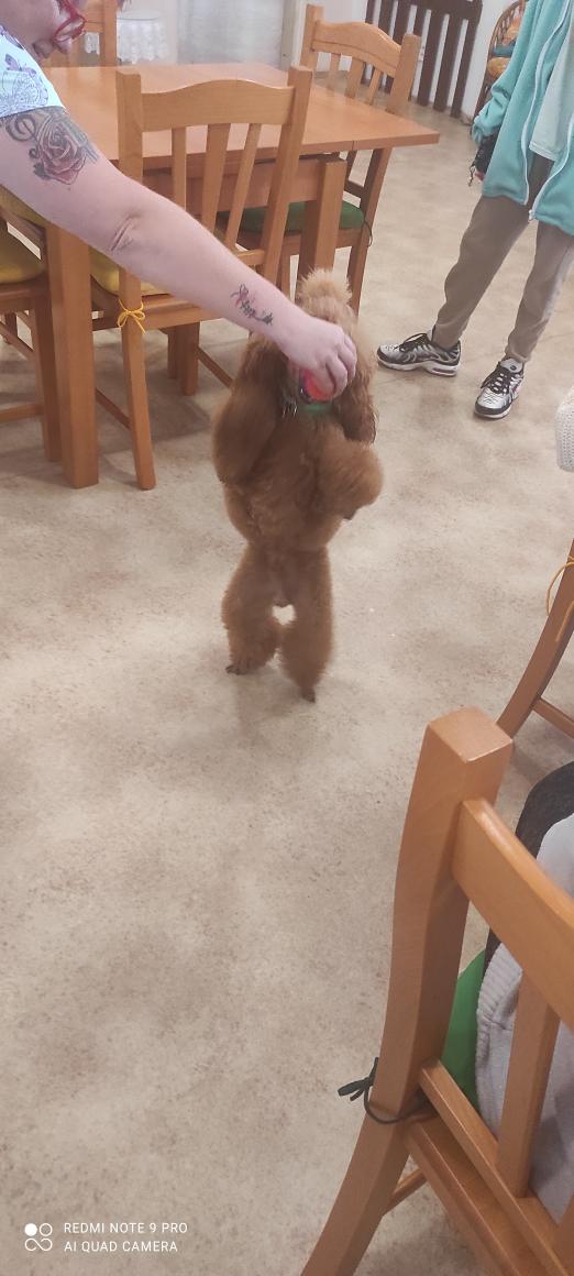 Na konci posezení jsme měli zajímavou návštěvu. Syn pečovatelky Moniky přivedl pudlíka Maxe, který se bude připravovat na canisterapii. A tak se Maxík nechal hladit i chovat v předstihu skoro od nás všech. 👏👏👏