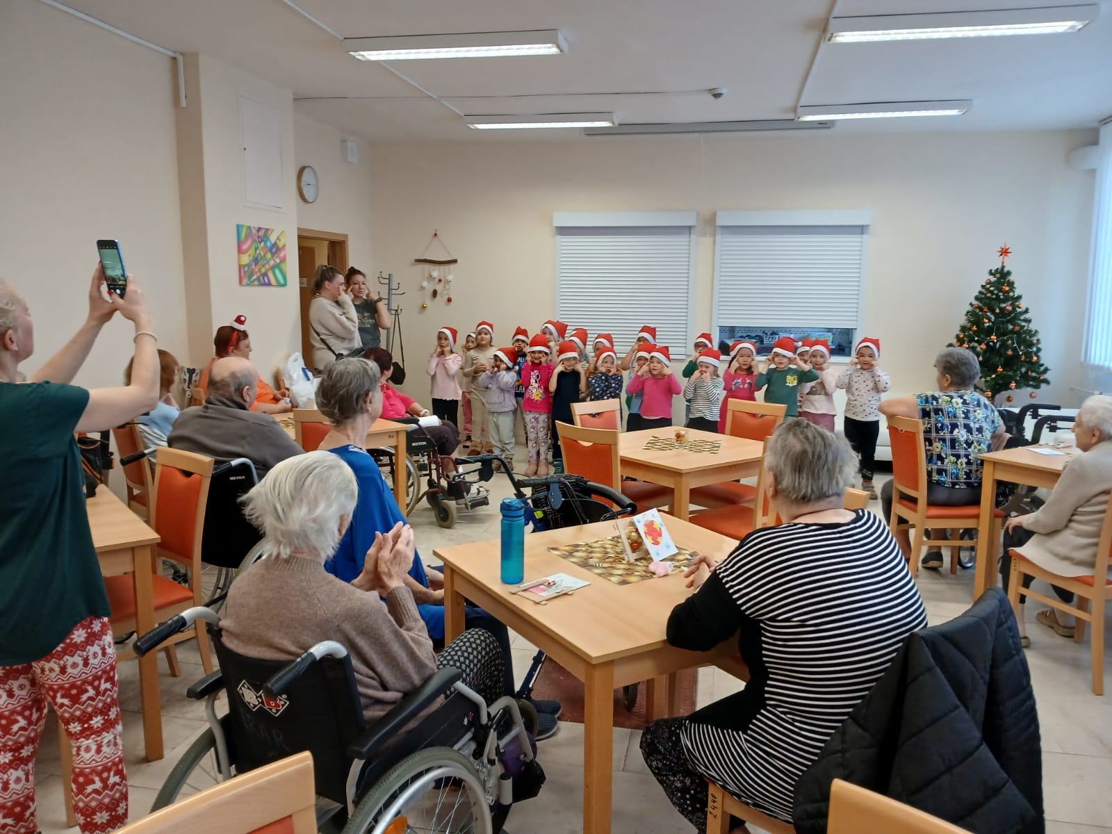 Následující den nás přišly navštívit děti z MŠ Bělehradská se svým vánočním vystoupením. Senioři si setkání velmi užili a děti obdarovali drobnými dárky. V ten stejný den, mezi nás přišli zástupci sboru dobrovolných hasičů – Mostecká Káčata a také předali dárky našim seniorům. Dále mezi nás také s dárky přišli studenti Soukromé základní školy Optima se zástupci Městské policie Most. Také oni nás potěšili svým vystoupením a vydali se zpět do školy. V pondělí 15. prosince 2025 za námi přijela s dárky také tisková mluvčí Ing. Danuše Vránová z věznice Bělušice. Zdejší odsouzení vyrobili ozdobné vázy, košíky a ošatky z pedigu, obrazy a další výrobky, které osobně předala paní Vránová naší vedoucí Lence Makovcové. 🙋🙋🙋