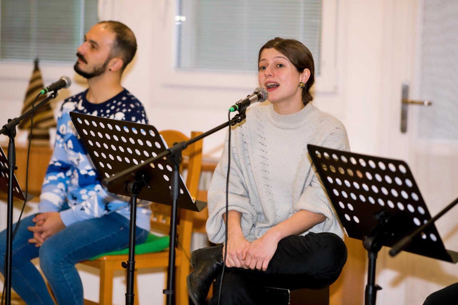 🎭🎶 Odpoledne s živou hudbou a zpěvem. Odpoledne kulturní program pokračoval. Přišli nám zahrát naši pravidelní návštěvníci Lukáš a Tadeáš, kteří tentokrát přivedli i herečku Elišku Navrátilovou. Ta svým nádherným hlasem zazpívala několik sólových písní. Vánočními koledami jsme celý podvečer zakončili a všem účinkujícím velmi děkujeme za příjemný zážitek. Mnoho z nás už divadlo nenavštěvuje, a o to více si vážíme živého vystoupení přímo u nás. 🌟
