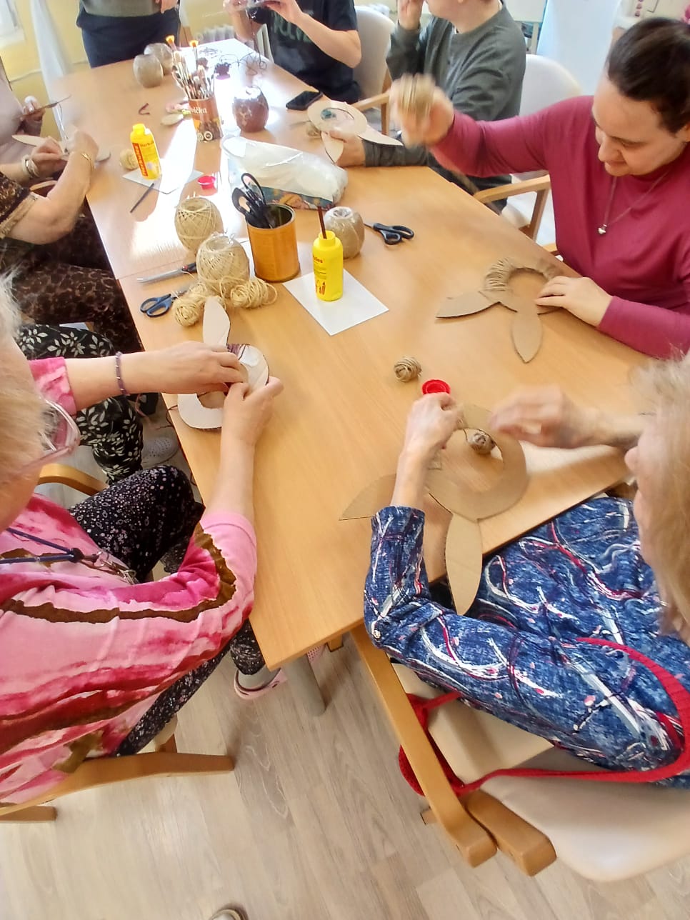 V pondělí 9. března 2026 se seniorky z Domova pro seniory, Jiřího Wolkera a klienti Denního stacionáře, Jiřího Wolkera pustili do společného tvoření velikonočních dekorací. 🙏🙏🙏