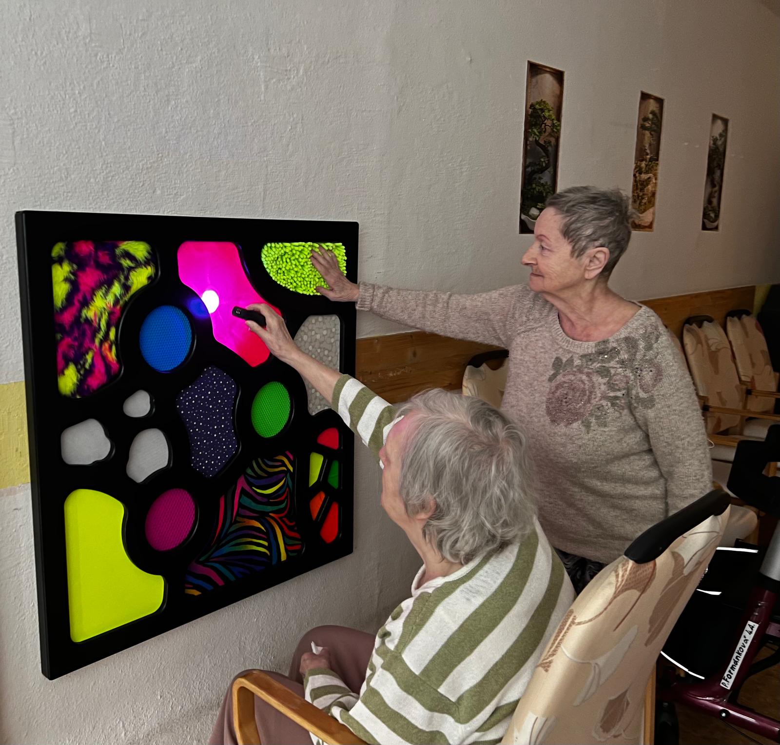 V Domově se zvláštním režimem v Harmonii byly nově instalovány taktilní panely, které významně rozšiřují možnosti práce s klienty. Tyto nástěnné pomůcky jsou navržené tak, aby podporovaly smyslové vnímání, jemnou motoriku i přirozenou aktivitu.