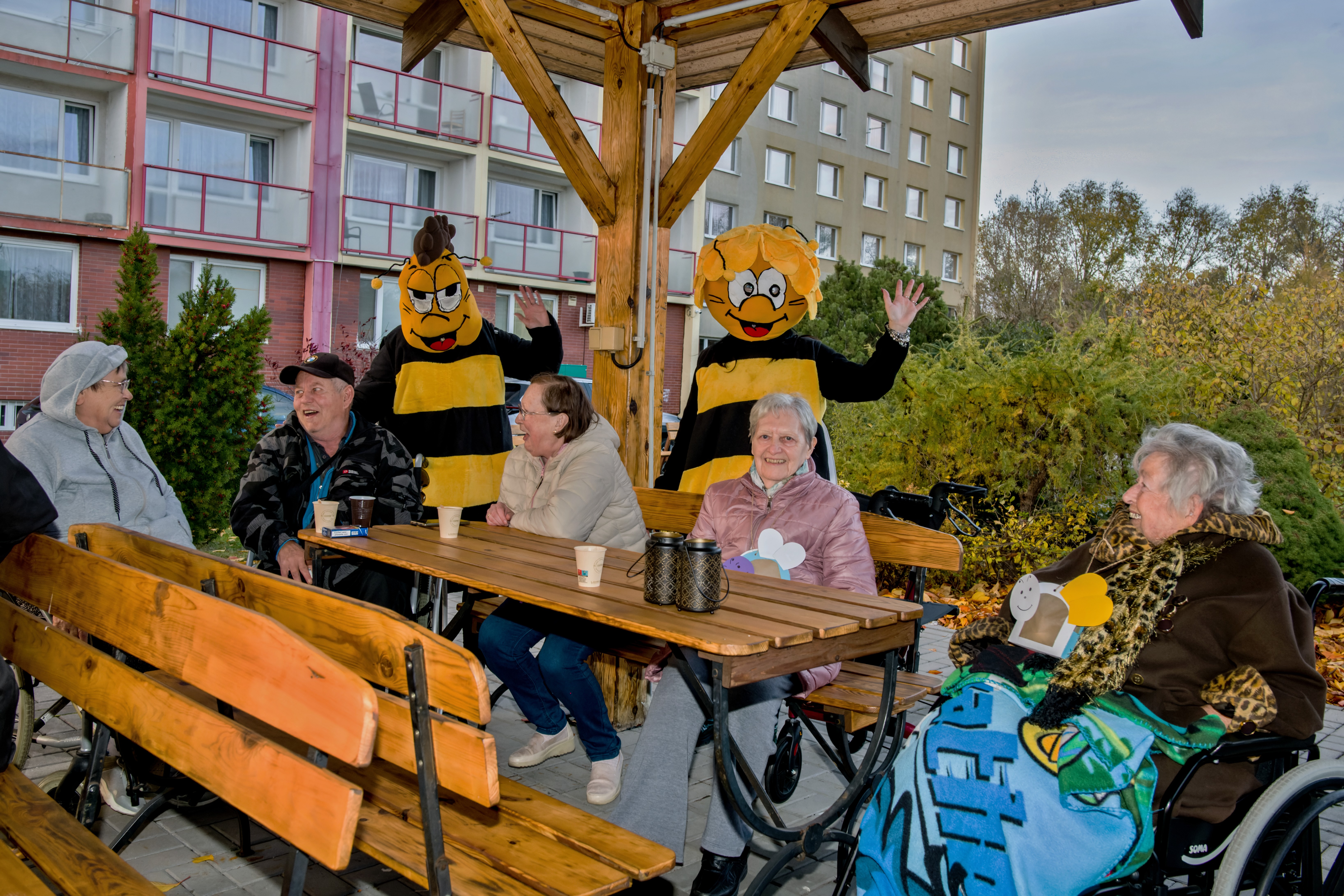 Podzimní zahrada Domova Harmonie se proměnila v pohádkové místo, kde se potkaly děti, rodiče, prarodiče i naši senioři. Všichni společně pomáhali „uspávat broučky“ – se světýlky, písničkami a dobrou náladou, která prosvítila i sychravé odpoledne. 🍂💫