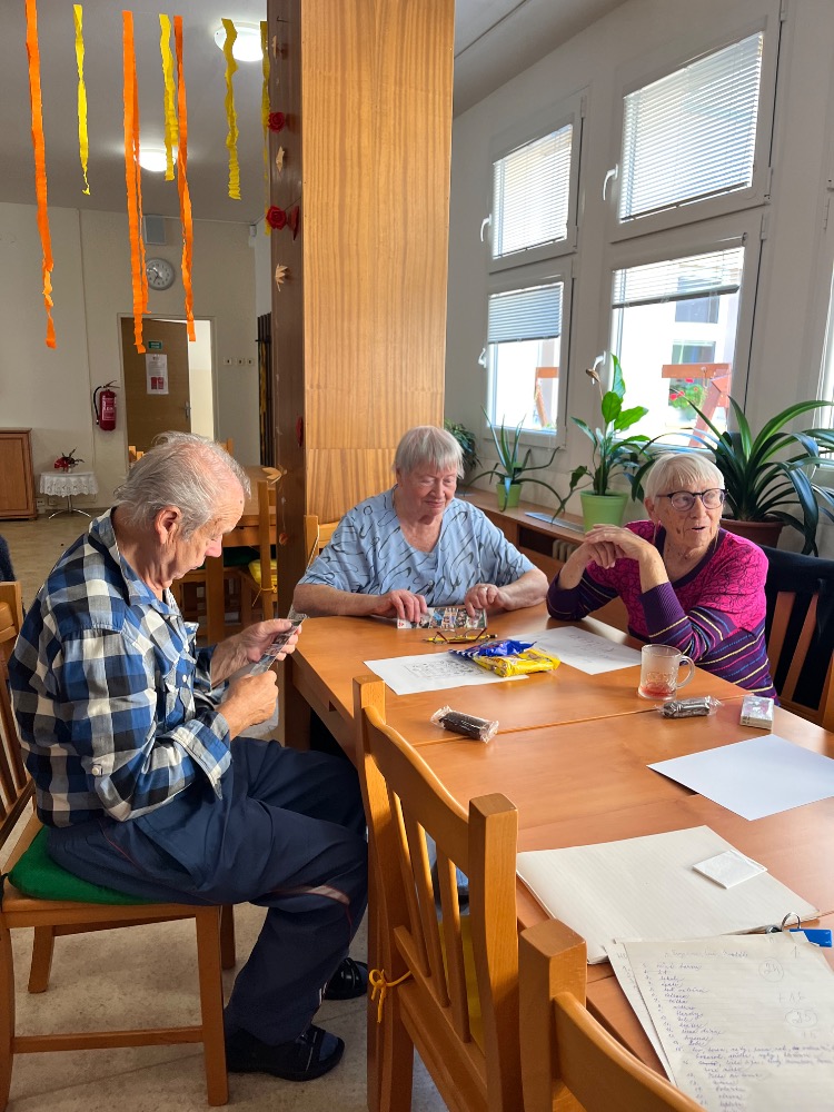 V pátek 3.10. jsme na penzionu v Albrechtické ulici prožili dopoledne u vědomostního kvízu. Ten bývá u seniorů velmi oblíbený. 🙂 Tentokrát byl složen z různých otázek z historie a přírody. 🌷 Soutěžilo se v malých skupinkách, tak mohli senioři spolupracovat a vzájemně si radit. Bylo hezké pozorovat, jak se všichni aktivně zapojili, přemýšleli a užívali si společný čas. 🍀