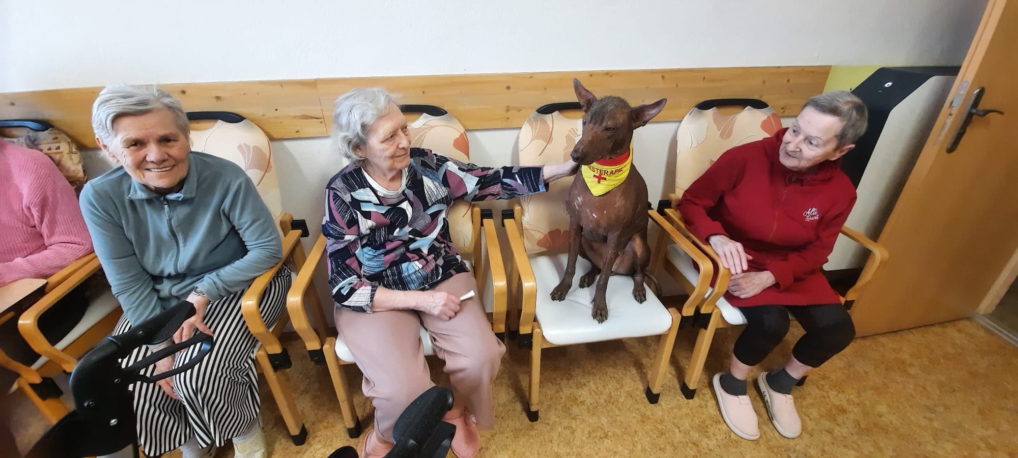 Paní Marcela Maroušková chodí do Harmonie pravidelně jedenkrát týdně se svými bezsrstými naháči - Malinou, Carinkou, Viky a Roxy. Nyní svoji smečku canisterapeutických pejsků rozšířila o štěňata v zácviku - temperamentní Amálku a Nelinku, která do zařízení vnáší novou a velmi pozitivní energii. Vždy se těšíme na další návštěvu, která je oblíbená nejen mezi uživateli, ale i zaměstnanci. Děkujeme za tu možnost rozdávat lidem radost touto formou. 🙏🙏🙏