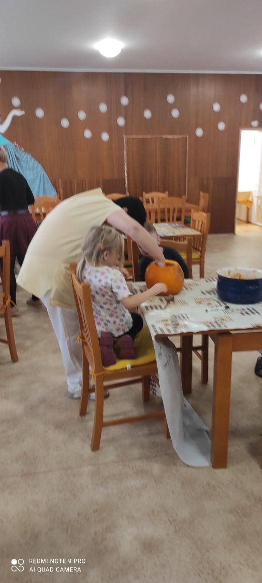 V pátek 24. 10. k nám děti zavítaly a společně jsme dlabali opravdové dýně i vyráběli papírové duchy. Zábava to byla veliká – pro malé i velké. 🎨✨