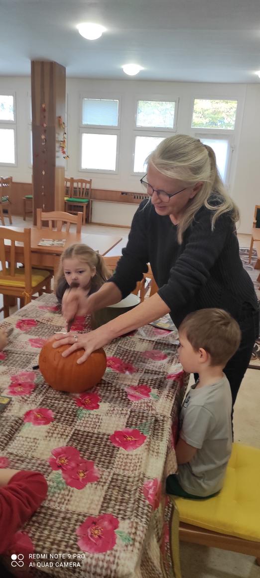 Protože se blíží dušičkový čas a všude kolem nás se objevily dýně, museli jsme se sejít i my – s našimi malými kamarády z MŠ v Albrechtické ulici. 🧡