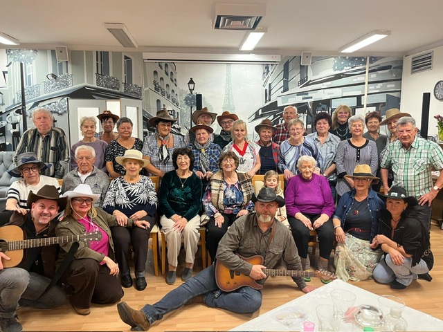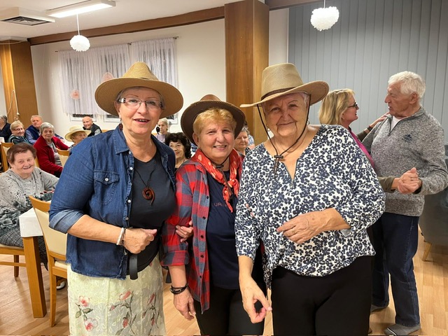 Hned při první písničce se naši obyvatelé roztančili – známé country melodie zněly celým sálem a úsměvy zářily na všechny strany. Během odpoledne proběhla i soutěž o nejlepší dámský a pánský westernový outfit, která měla velký úspěch. Kapela navíc ocenila nejlepší tanečníky drobnými dárky – vítězové si odnesli originální CD kapely. 👑👑👑