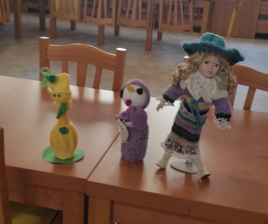 Měli jsme i "návštěvu". Dámu s kloboukem, fialového skřítka a žlutý citronek - vlastnoručně vyrobené figurky a oblečky, kterými se nám přišla pochlubit naše nejstarší obyvatelka paní Eva Nebesářová. 🤩🤩🤩