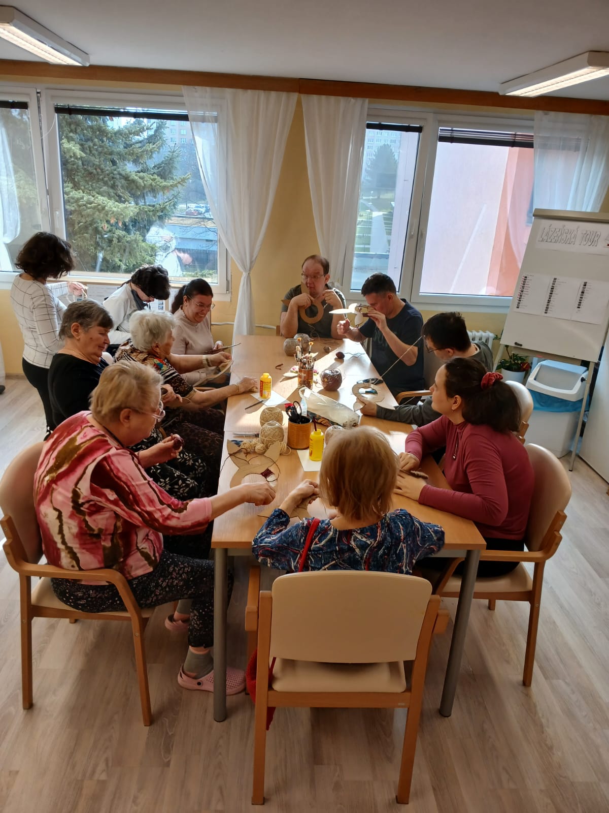 V pondělí 9. března 2026 se seniorky z Domova pro seniory, Jiřího Wolkera a klienti Denního stacionáře, Jiřího Wolkera pustili do společného tvoření velikonočních dekorací. 🙏🙏🙏