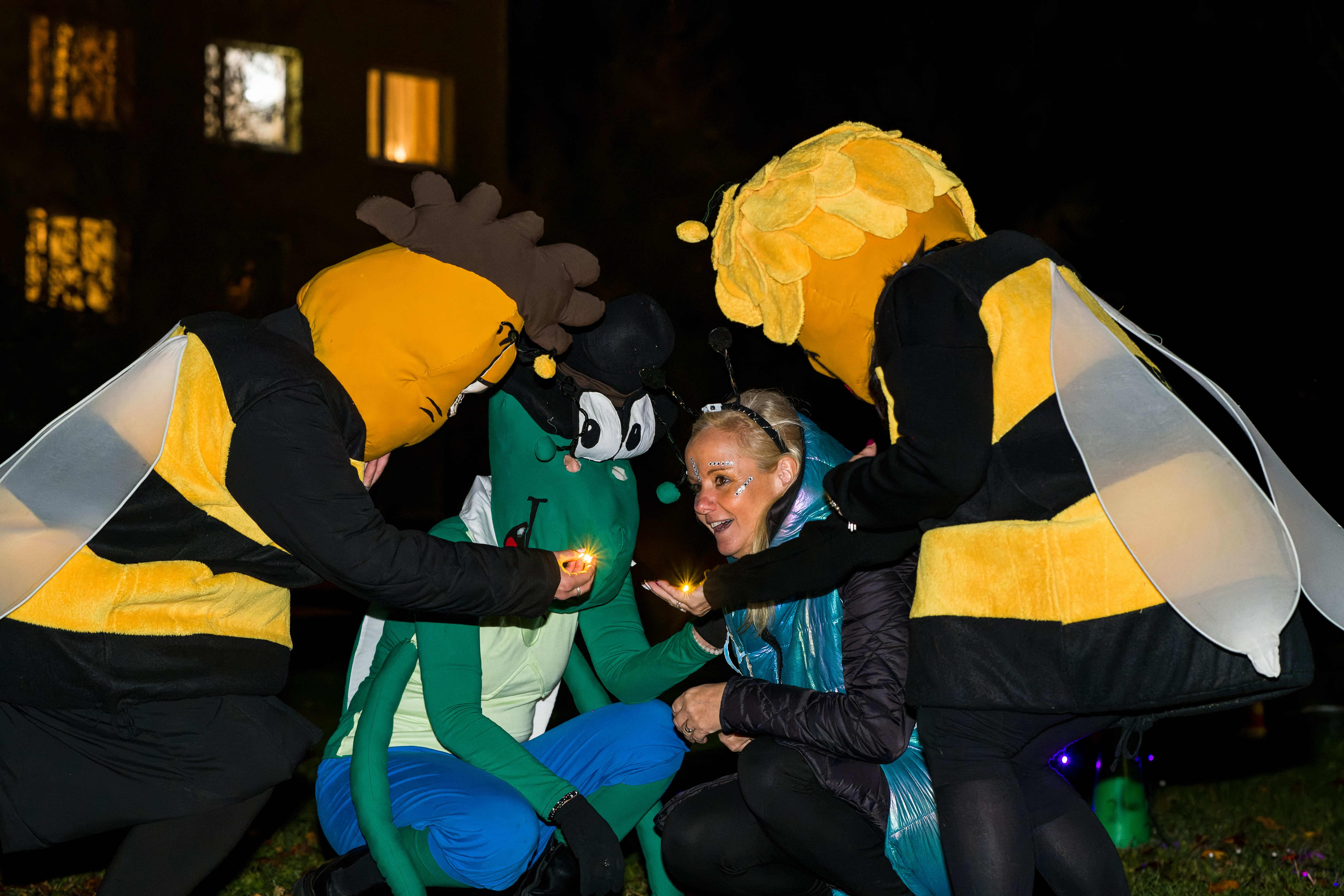 Podzimní zahrada Domova Harmonie se proměnila v pohádkové místo, kde se potkaly děti, rodiče, prarodiče i naši senioři. Všichni společně pomáhali „uspávat broučky“ – se světýlky, písničkami a dobrou náladou, která prosvítila i sychravé odpoledne. 🍂💫