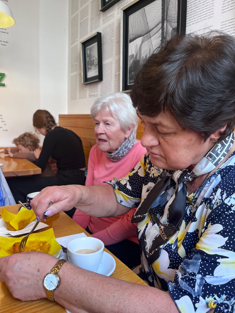 Z vystavených fotografií na nás dýchla atmosféra a energie minulé doby a současně přispěla k zamyšlení se nad dobou dnešní. Náš výlet jsme samozřejmě zakončili návštěvou příjemné kavárny, posilnili jsme se výbornými zákusky a pak už zase zpátky vlakem domů. 🙏🙏🙏